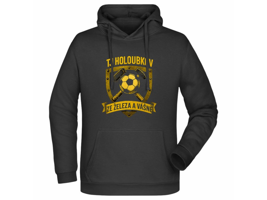 Klasická dětská černá mikina pro fanoušky TJ Holoubkov je ideální volbou pro podporu klubu na zápasech i pro každodenní nošení. Na přední straně se nachází logo klubu, zatímco záda zdobí výrazný nápis „Holoubkov fans“, který jasně ukazuje týmovou příslušnost.