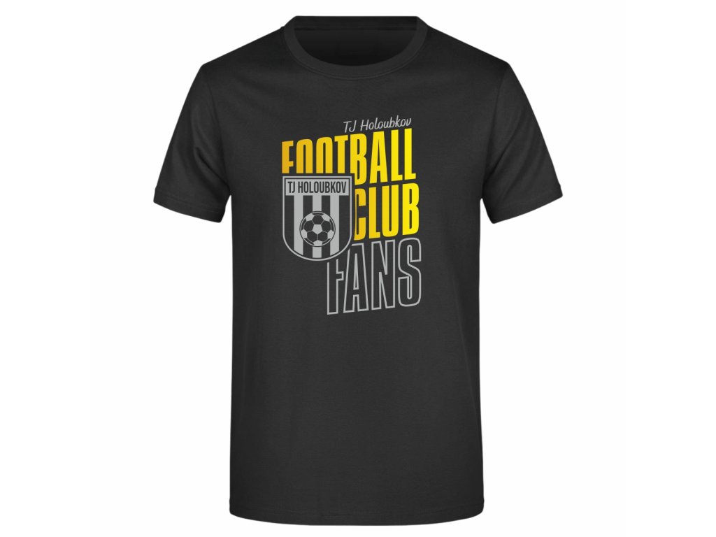 Klasické dětské černé tričko pro fanoušky TJ Holoubkov je ideální volbou na zápasy, klubové akce i běžné nošení. Přední stranu zdobí design loga klubu, zatímco na zádech se nachází výrazný nápis „Holoubkov fans“, který jasně ukazuje podporu týmu.