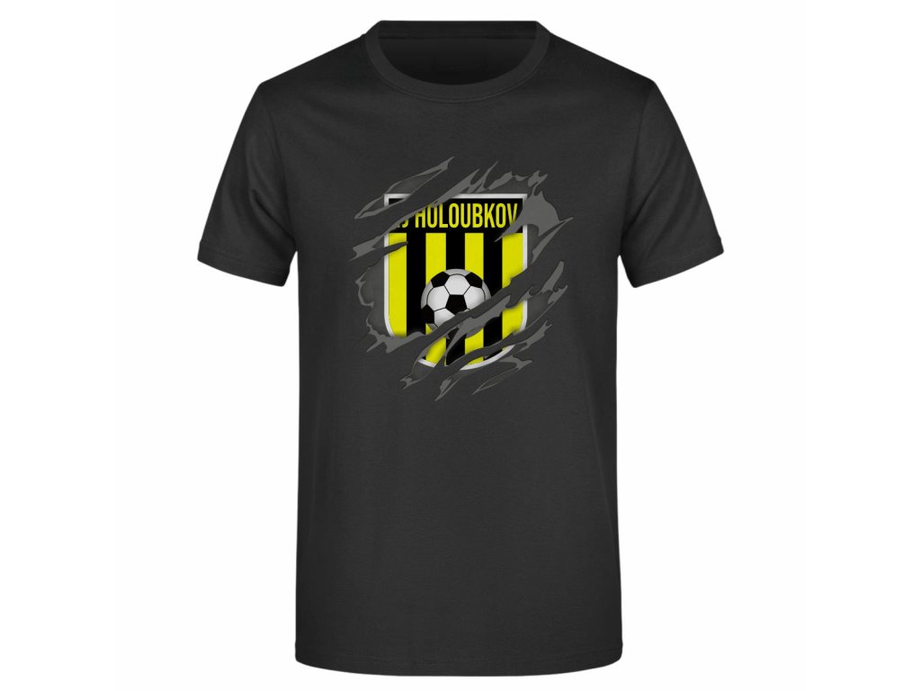 Klasické dětské černé tričko pro fanoušky TJ Holoubkov je ideální volbou na zápasy, klubové akce i běžné nošení. Přední stranu zdobí design loga klubu, zatímco na zádech se nachází výrazný nápis „Holoubkov fans“, který jasně ukazuje podporu týmu.