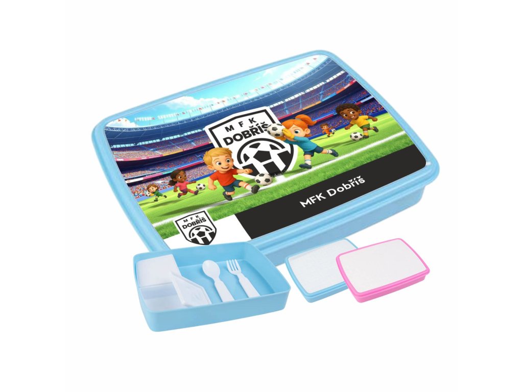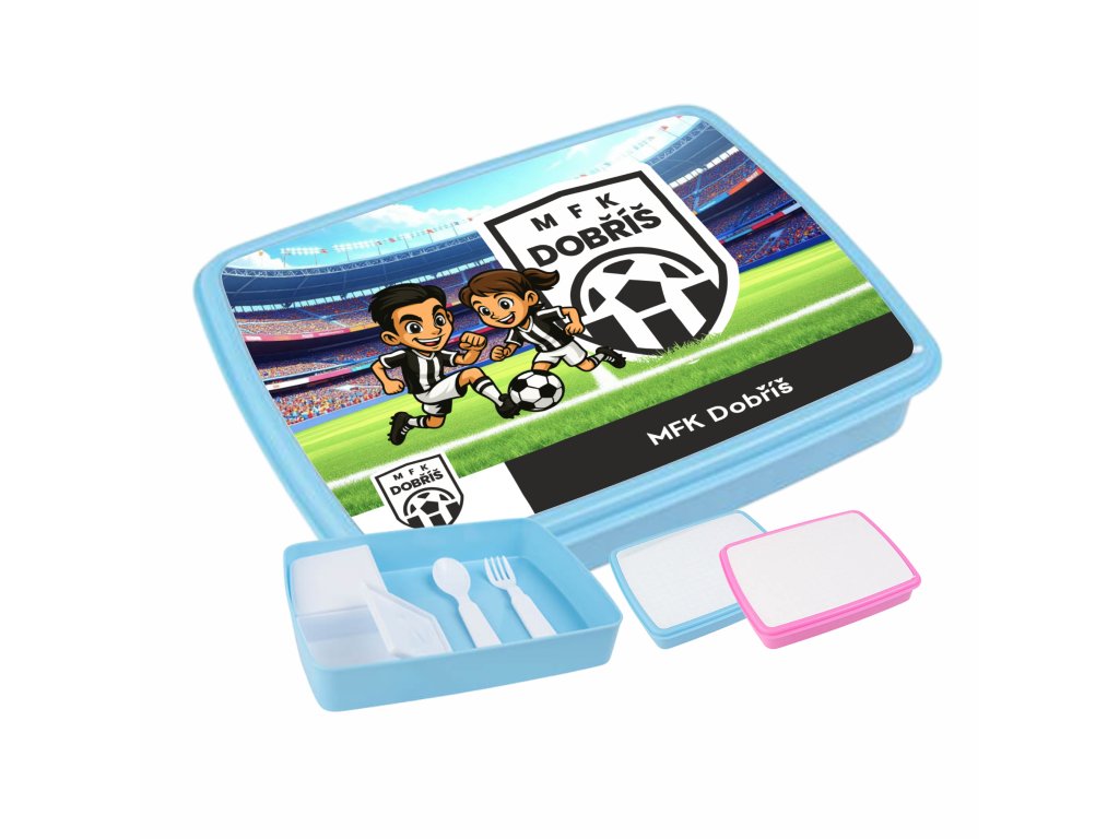 Praktická a barevná dětská krabička na svačinu MFK Dobříš je skvělým doplňkem pro malé sportovce i školáky. Vyrobena z odolného, zdravotně nezávadného plastu s bezpečným uzavíráním, které zabrání vysypání obsahu. Krabička je zdobená klubovým logem MFK Dobříš a barevným motivem v klubových barvách, díky kterým bude svačina vždy stylová a motivující. Ideální pro uchování oblíbených pochoutek během tréninků i ve škole.