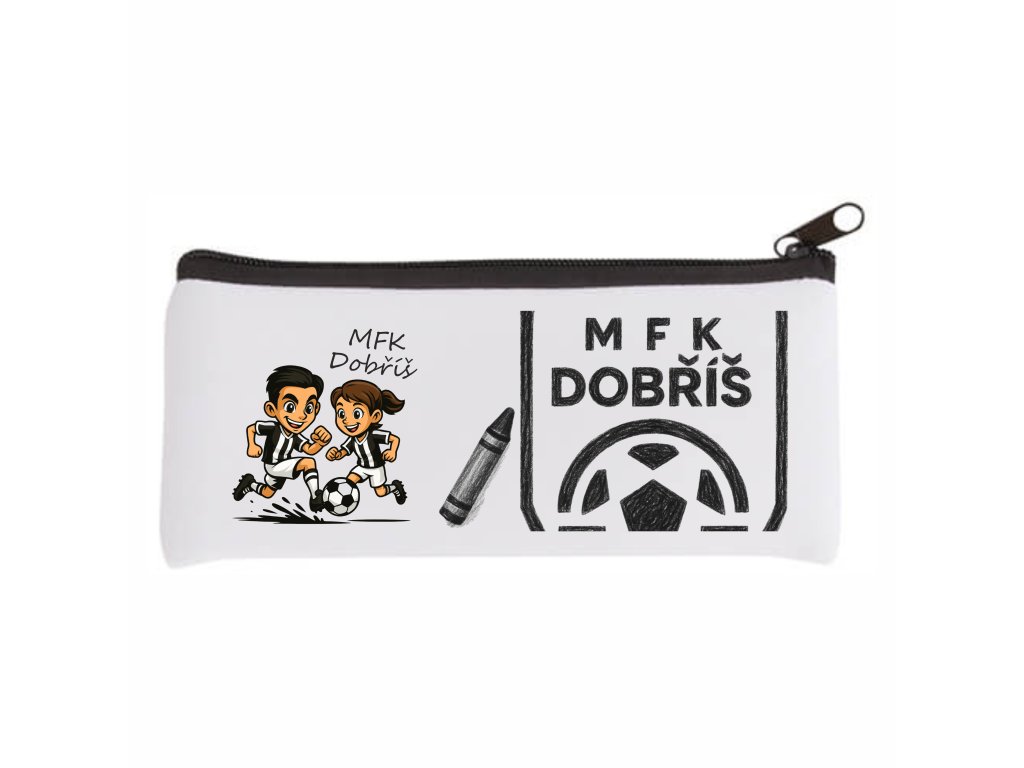 Kompaktní a praktický malý penál MFK Dobříš je ideální pro každodenní použití ve škole i na trénincích. Vyroben z odolného materiálu s kvalitním zipem, nabízí dostatek prostoru pro základní psací potřeby. Na povrchu je umístěno výrazné klubové logo MFK Dobříš v klubových barvách, které dá jasně najevo, komu fandíte. Díky svým rozměrům se snadno vejde do batohu nebo tašky.