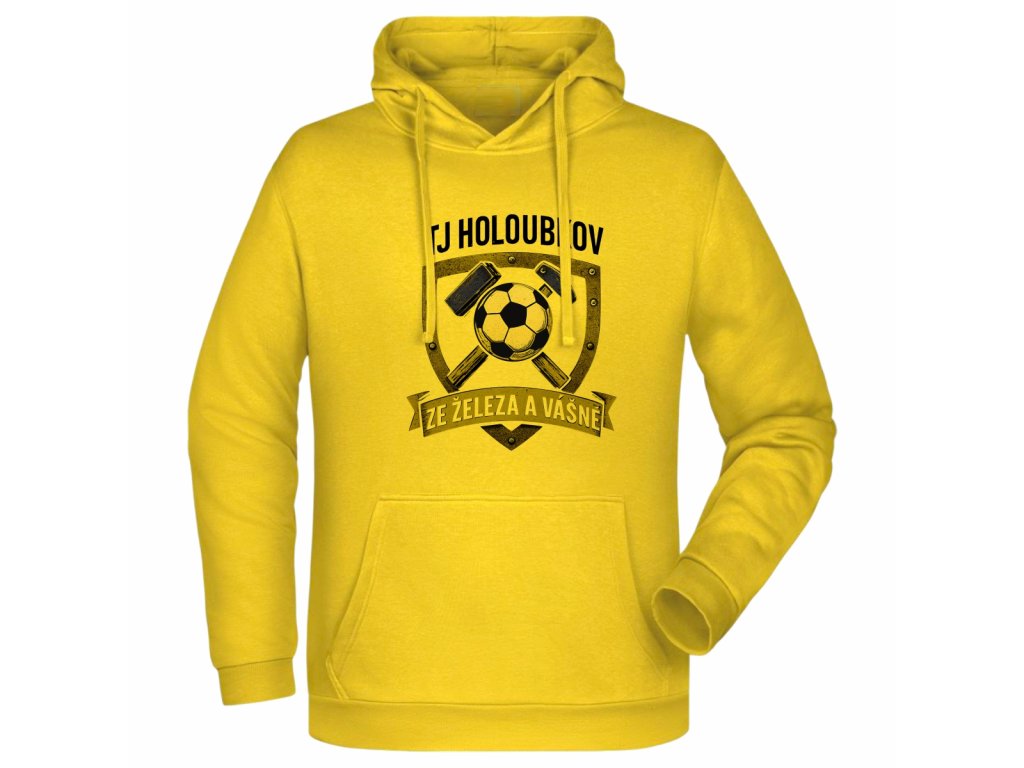 Klasická žlutá mikina pro fanoušky TJ Holoubkov je ideální volbou pro podporu klubu na zápasech i pro každodenní nošení. Na přední straně se nachází design loga klubu, zatímco záda zdobí výrazný nápis „Holoubkov fans“, který jasně ukazuje týmovou příslušnost.