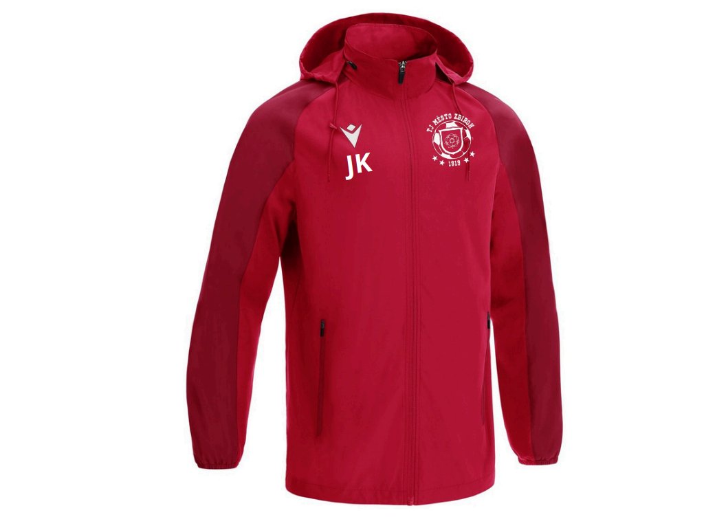Praktické provedení doplňuje kapuce schovaná v límci, celopropínací zip a elastické zakončení rukávů pro lepší přizpůsobení. Na srdci je umístěno logo TJ Město Zbiroh, zatímco pod logem Macron najdeš personalizované iniciály nebo číslo hráče, což dodává bundě jedinečný týmový charakter. Červená barva podtrhuje klubovou identitu a dodává bundě dynamický vzhled.
