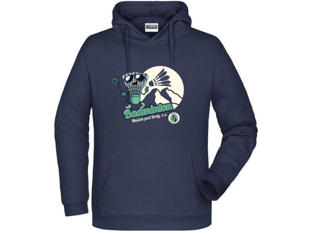 Stylová pánská mikina s kapucí a klokánkovou kapsou v námořní modré barvě je skvělým kouskem pro všechny fanoušky i hráče Badmintonu Mníšek pod Brdy. Vyrobená z kvalitní 100% bavlny, nabízí maximální pohodlí, příjemný pocit při nošení a odolnost i při každodenním používání.