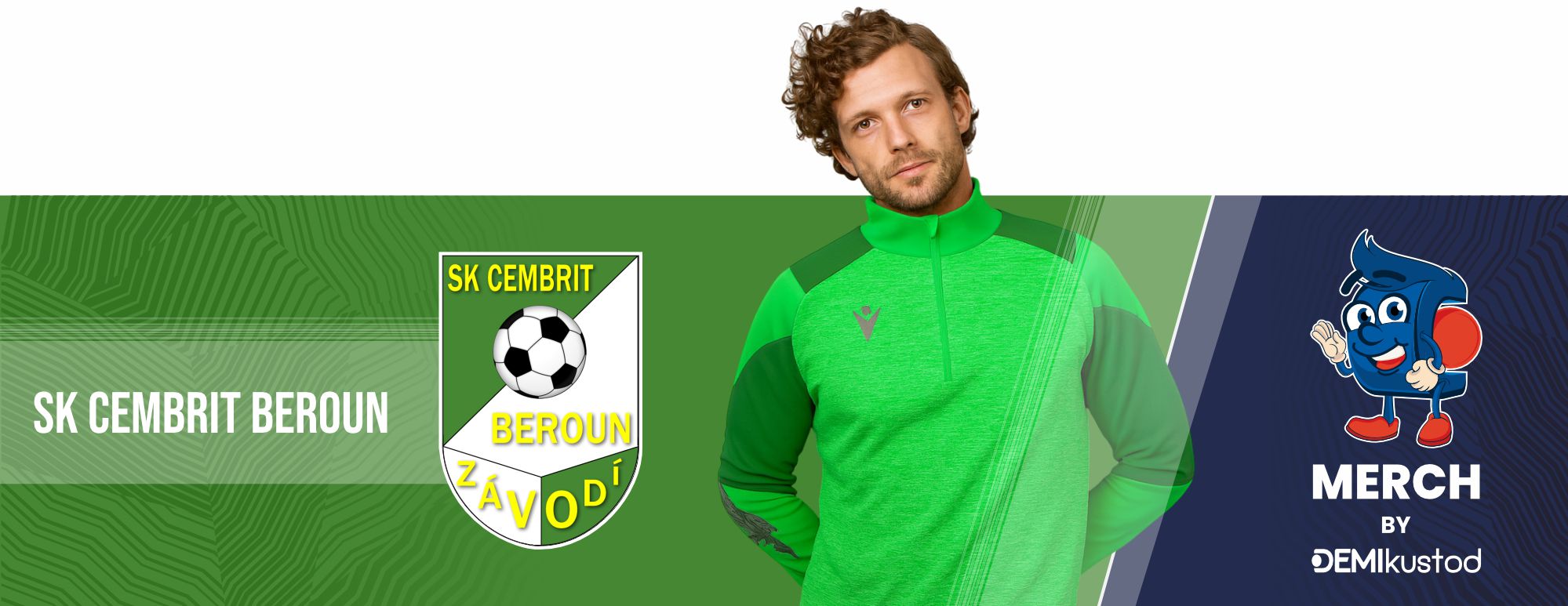 Zelená šusťáková bunda Praia Hero 🟢 s logem SK Cembrit Beroun na srdci a hráčskými iniciálami pod logem Macron. Lehká větrovka z materiálu Airtex, která je odolná, prodyšná a...