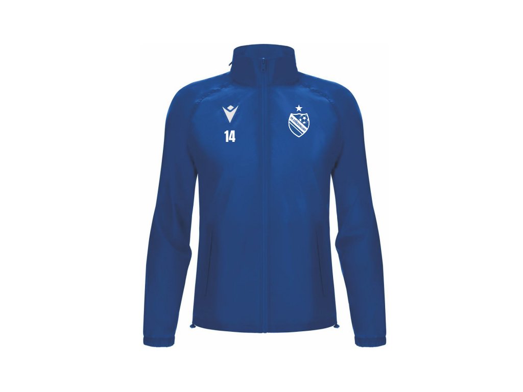 Bunda má síťovanou podšívku pro lepší prodyšnost a pohodlí, praktický celopropínací zip, kapuci skrytou v límci a elastické manžety pro optimální přizpůsobení. Na levé straně hrudi (na srdci) je umístěno logo FK Středokluky, pod logem Macron pak najdete iniciály nebo číslo hráče.