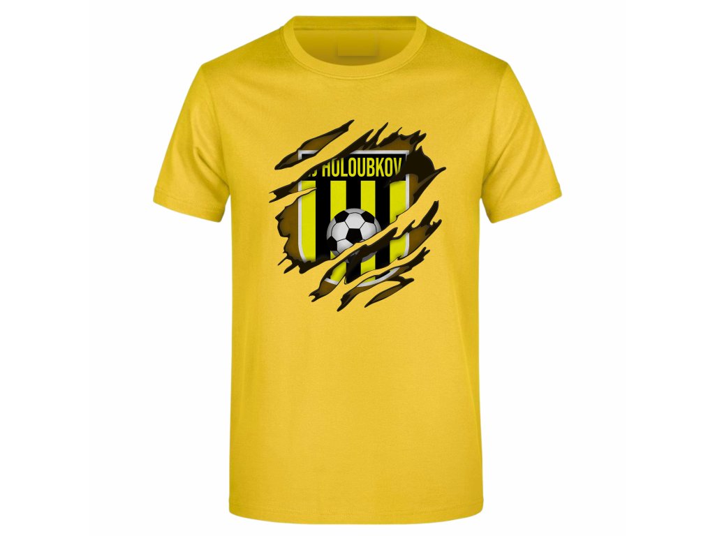 Klasické žluté tričko pro fanoušky TJ Holoubkov je ideální volbou na zápasy, klubové akce i běžné nošení. Přední stranu zdobí design loga klubu, zatímco na zádech se nachází výrazný nápis „Holoubkov fans“, který jasně ukazuje podporu týmu.