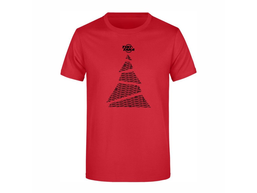 Stylové tričko je určeno pro fanoušky, kteří mají rádi jednoduchý, ale výrazný design. Hlavním motivem je vánoční stromeček vytvořený z textu TIKI TAKA, doplněný o logo nad motivem. Ideální na každodenní nošení během sváteční sezóny nebo jako originální dárek pod stromeček.