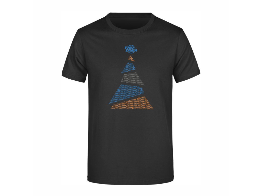 Stylové tričko je určeno pro fanoušky, kteří mají rádi jednoduchý, ale výrazný design. Hlavním motivem je vánoční stromeček vytvořený z textu TIKI TAKA, doplněný o logo nad motivem. Ideální na každodenní nošení během sváteční sezóny nebo jako originální dárek pod stromeček.