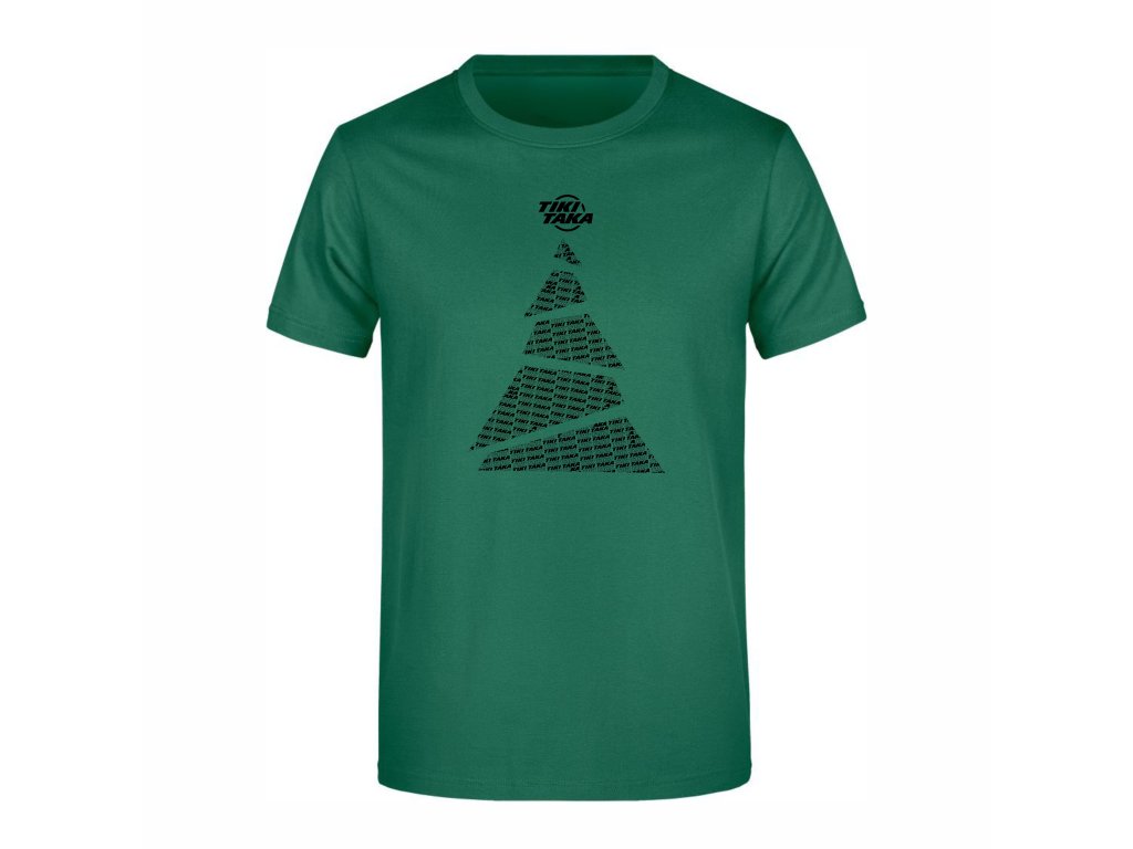 Stylové tričko je určeno pro fanoušky, kteří mají rádi jednoduchý, ale výrazný design. Hlavním motivem je vánoční stromeček vytvořený z textu TIKI TAKA, doplněný o logo nad motivem. Ideální na každodenní nošení během sváteční sezóny nebo jako originální dárek pod stromeček.