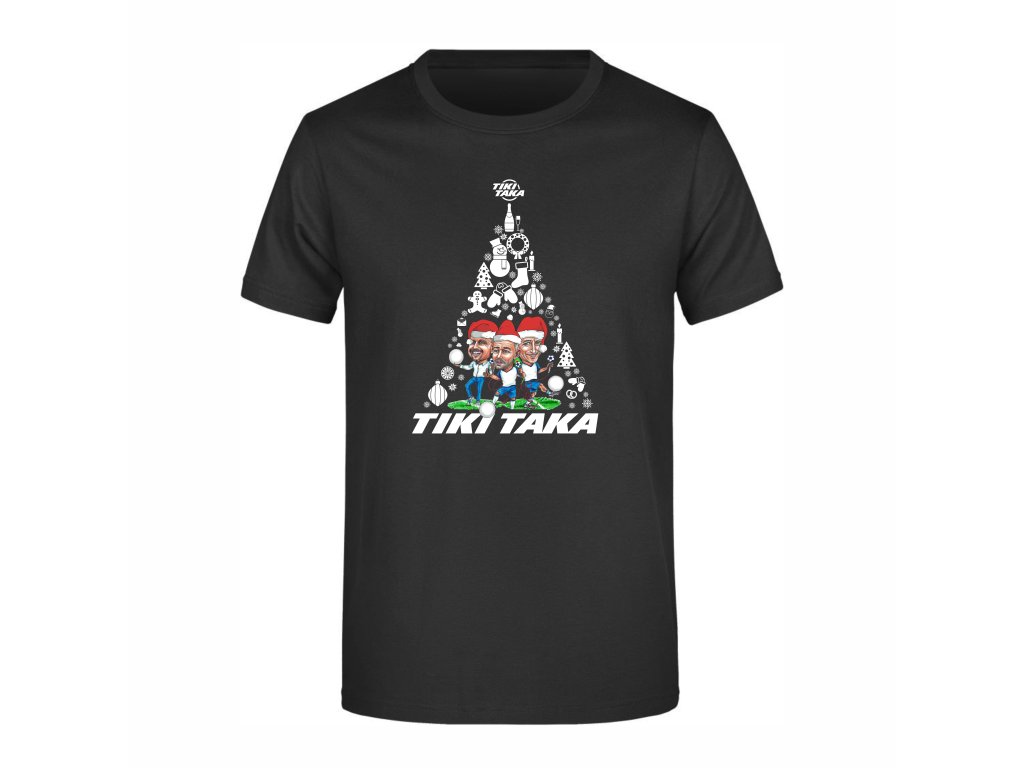 Toto sváteční tričko je poctou trojici nejvýraznějších postav pořadu TIKI TAKA – Petr Svěcený, Vladimír Šmicer a Peter Švancara. Grafika spojuje vánoční motiv ve tvaru stromku s typickým humorem této oblíbené fotbalové relace.