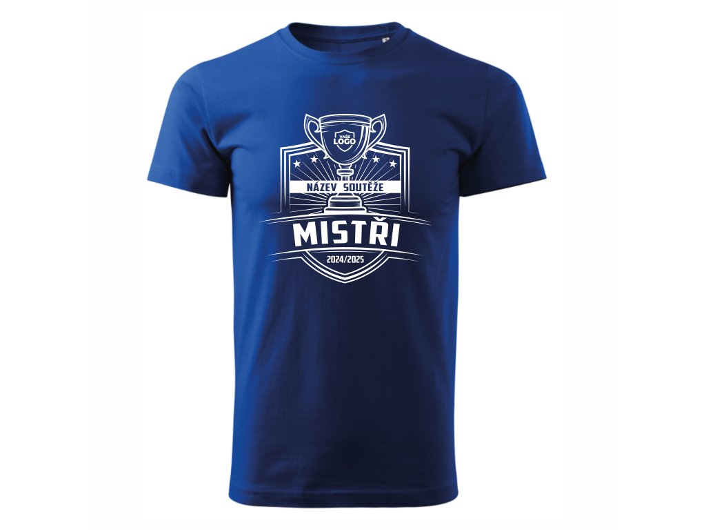 Stylový a odvážný potisk „MISTŘI“ s motivem trofeje a názvem soutěže